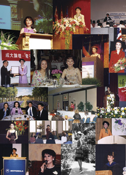 As a sought-after speaker at national and international events across the U.S. and abroad, her speeches and lectures have taken her to 28+ countries, including France, Germany, Belgium, Netherlands, Spain, England, Sweden, Denmark, Finland, Switzerland, Mexico, Brazil, Canada, Israel, Hong Kong, Singapore, Malaysia, Taiwan, Korea, Japan, China, India, Thailand, Philippines, Puerto Rico, Australia, etc.